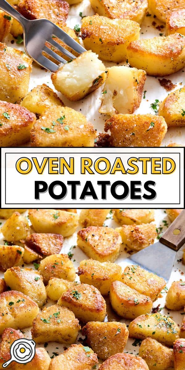 6. Donnez-leur suffisamment de temps pour rôtir complètement. À 425°F, les pommes de terre rôties mettent généralement environ 40 minutes au four, avec un retournement à mi-cuisson, pour devenir bien dorées et croustillantes. Ils sont prêts lorsque les bords sont profondément dorés et que l’extérieur est croustillant. Gardez un œil sur eux au cas où votre four chauffe un peu plus que le mien !