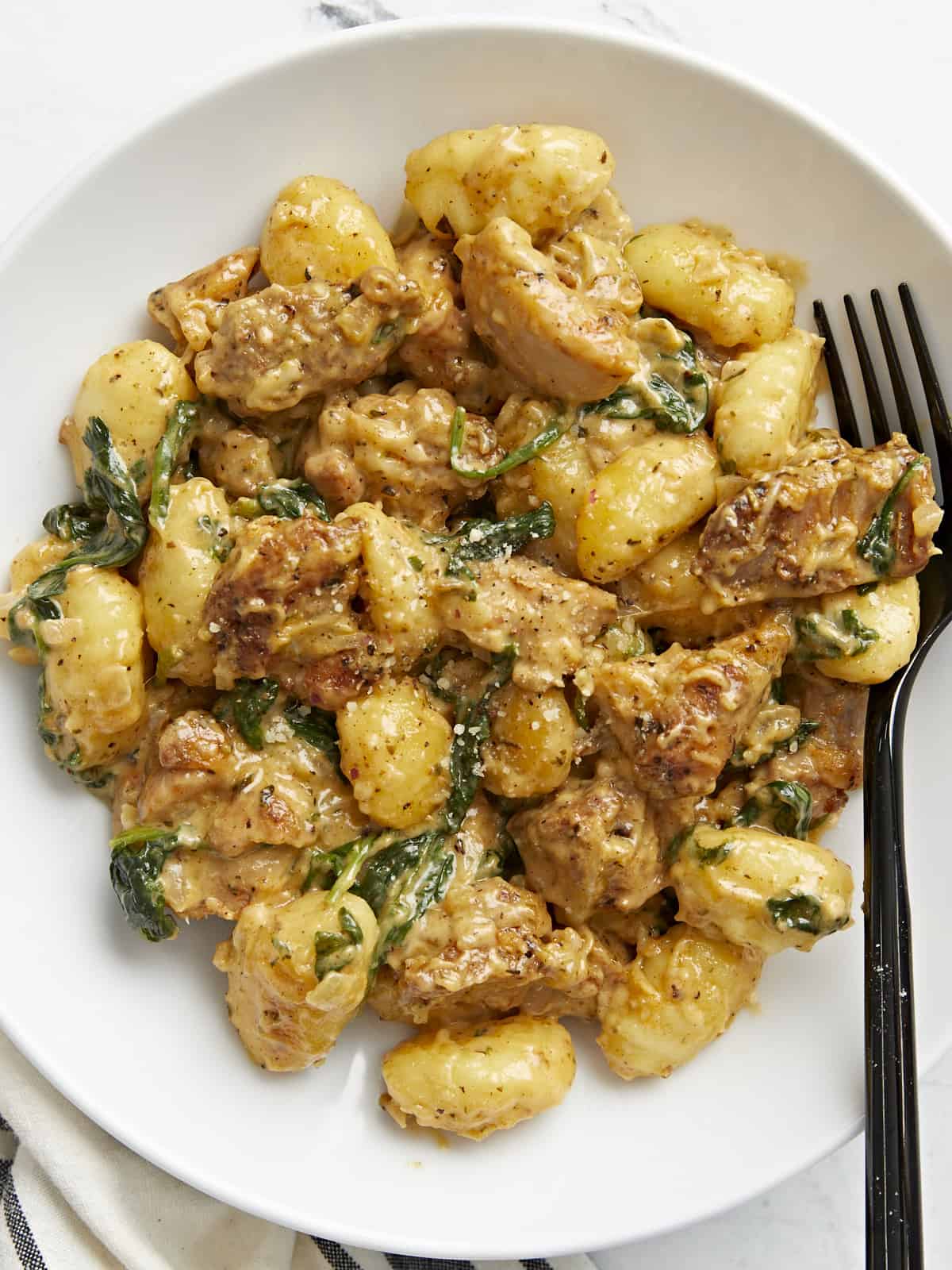 Cette recette veloutée de poulet et de gnocchis crémeux est l’un de mes plats tout-en-un préférés car elle est facile, vous pouvez la préparer en moins de trente minutes, elle est copieuse et elle est vraiment délicieuse. Comme si je n’arrêterais pas de manger ça jusqu’à ce que tout soit délicieux. Des gnocchis moelleux trempés dans une riche sauce à la crème au beurre, avec des touches de poulet juteux et des épinards terreux ? Euh, ouais. Vous allez adorer celui-ci !